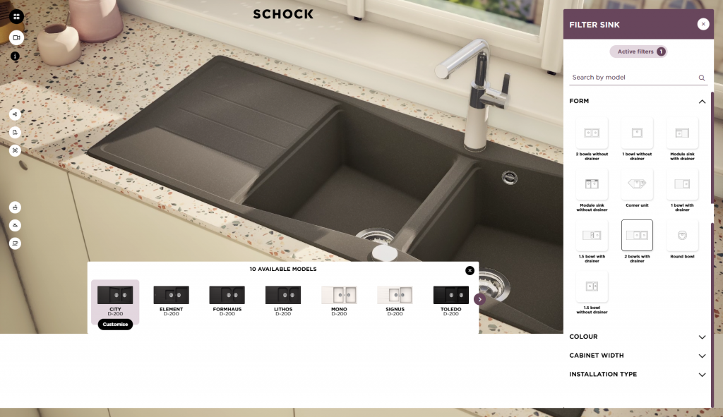 A cloud streamed application for faucet and sink configuration. I’ve worked on dynamic countertop cutouts, cameras, environment configuration, state machine, optimization etc.